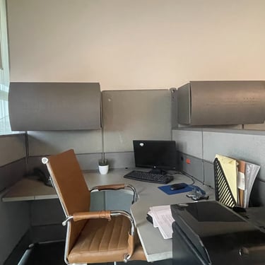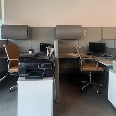 4 oficinas con mesas de madera.